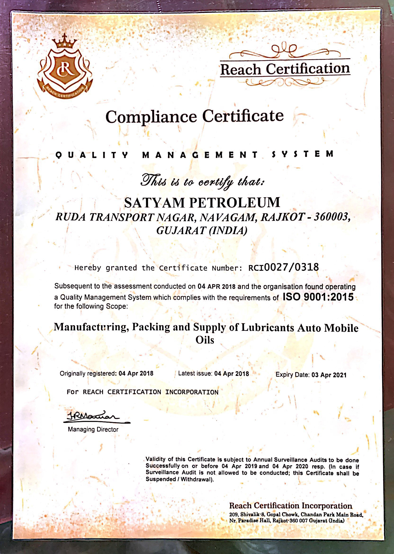 The assurance of a " Made in india " Quality